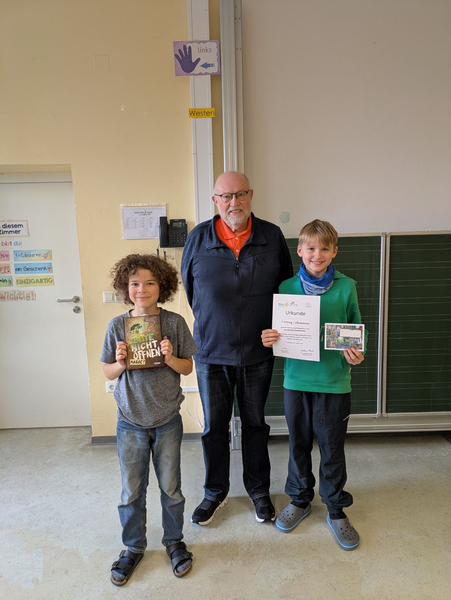 Lorenz Lehmann und Luca Kögl gewannen den diesjährigen Lesewettbewerb an unserer Schule und wurden dafür vom Rotary Club Schongau, vertreten durch Herrn Wilfried Funke, mit einer Urkunde und einem Büchergutschein ausgezeichnet.