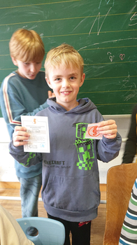 Am Freitag, 14.03. fand der 2. Projekttag in der 2. Klasse statt. Mit Hilfe von konkreten Rollenspielen wurden Konfliktsituationen und deren Lösung erprobt und geübt. Wichtige Leitsätze und positive Gedanken sollen den Kindern von nun an helfen, auf eine gestärkte Selbst - und Sozialkompetenz zurückgreifen zu können. Am Ende bekamen alle nach einer kleinen Prüfung eine Urkunde ausgehändigt. Das Projekt ist nicht zu Ende, sondern die erlernten Verhaltensweisen werden immer wieder Einfluss auf den Schulalltag haben.