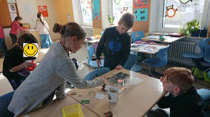 Am 21.02. hatten die zweite und vierte Klasse eine wertvolle Kooperationsstunde. Die Strategien von Merkmeister Ralf Hofmann wurden erprobt. Lorenz aus der 4. Klasse erläuterte zuerst für alle das Plakat “1 - 2- 3 - gelernt”. Danach arbeiteten die Partnerkinder gemeinsam an der Lösung einer Aufgabe nach den besprochenen Punkten. Schließlich stellte eine Gruppe die Lösung an Hand des Plakates vor.