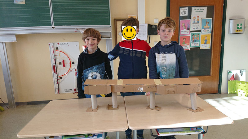 Im Rahmen des HSU Unterrichts haben sich die beiden dritten Klassen intensiv mit dem Thema "Brücken" befasst. Am heutigen Freitag konstruierten die SchülerInnen der Klasse 3b aus verschiedenen Alltagsmaterialien die unterschiedlichsten Brücken.