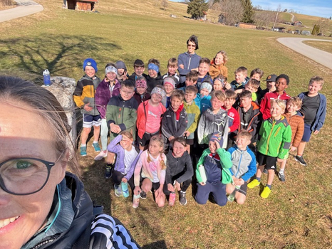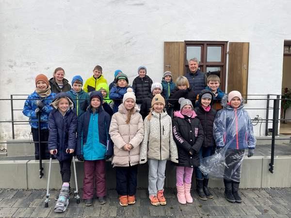 Am Freitag, 06.02. wurde die Klasse 4b von Frau Ranz zu einer Dorfrunde durch Schwabsoien abgeholt. Wir starteten unseren Rundgang in der Kirche. Schon dort erfuhren wir viel Interessantes zum Dorfbrand vor über 200 Jahren und dem Wiederaufbau des Dorfes. Der Weg führte uns über das heutige Rathaus mit Blick auf die alte Poststation zum früheren Gasthaus “Zum Zollhaus” hinunter zum ehemaligen See von Soien, von dem der Ort auch seinen Namen hat. Danach folgten wir der “Mühlenrunde” und erfuhren viel über das Handwerk, den Tuffabbau und die vielfältige Nutzung der Wasserkraft.