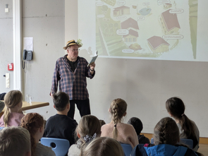 Am Montag, 24.11. besuchte uns Stephan Bach zu einer Lesung in der Schule. Er las aus dem Buch" Helden der Weide" von Rosa Marin. Sowohl die kleinen als auch die großen ZuhörerInnen waren begeistert und lauschten gespannt den Abenteuern der Tiere auf dem Bauernhof von Bauer Hermann. Der Schauspieler Stephan Bach nahm alle Kinder mit in die Geschichte. So wurde gemeinsam gesungen und die Zwiegespräche der Tiere nicht einfach nur gelesen, sondern gespielt.