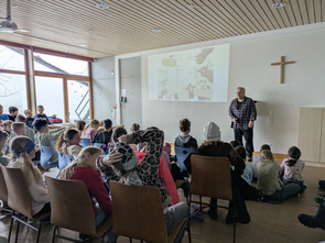 Zu einer besinnlichen Stunde haben wir uns im Religionsunterricht, individuell mit den Klassen 1 - 3 , an der wunderschönen Erntekrone versammelt, haben zudem den Kirchenraum kindgerecht erfahren und dabei ganz viele spannende Dinge in der Kirche entdeckt und besprochen.