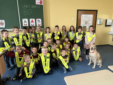 Am 21.11. erhielten die Erstklässler die gelben Sicherheitswesten, die von der Gebietsverkehrswacht gesponsert wurden. Frau Graser erarbeitete mit den SchülerInnen, dass sie dadurch deutlich sichtbarer für andere Verkehrsteilnehmer sind. Dies ist gerade jetzt sehr wichtig, wenn es morgens noch dunkel ist. Daher sollen die Kinder die Westen immer auf dem Schulweg tragen.