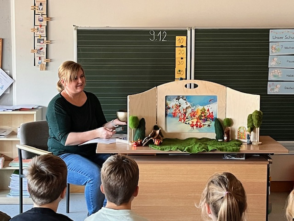 Am Dienstag, den 09.12. war Frau Leier wieder in den 2. Klassen und hat eine spannende Geschichte mit dem Kamishibai erzählt: "Die Weihnachtswichtel - Wunsch - Maschine“.