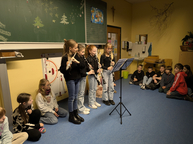 Am Donnerstag, 18.12. traf sich die Klasse 4b zu einer kleinen Weihnachtsfeier im Klassenzimmer. Es kamen Eltern, Großeltern und Geschwister. Mit einer bunten Mischung aus Liedern, einem Gedicht, gespielten Witzen und Instrumentalstücken stimmten wir uns auf Weihnachten ein. Mit Punsch, Mandarinen, Nüssen und Plätzchen saßen wir dann noch gemütlich zusammen.