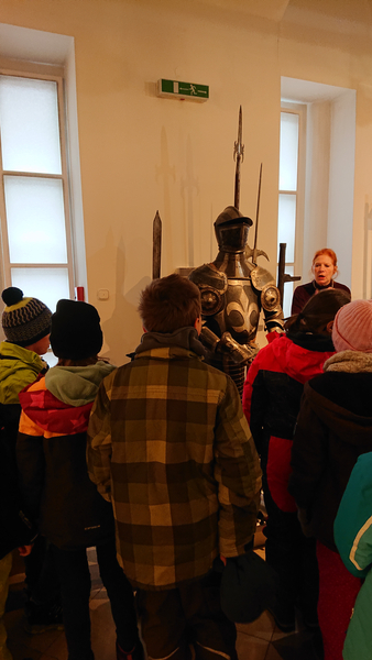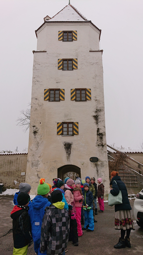 Am Donnerstag, 02.03.23 besuchte die 3. Klasse die Stadt Schongau. Vor dem Rathaus erwartete uns Frau Heitmeier, die uns zuerst ins Schongauer Stadtmuseum führte. Dort bekamen wir neben der mittelalterlichen Fußbodenheizung des Spitals auch die Ausbildung zum Ritter erklärt. Ganz schön schwer war so eine Rüstung, stellten die SchülerInnen erstaunt fest, als sie Beinschienen, Brustpanzer, Helm, Schwert und Kettenhemd anprobieren durften. Des Weiteren erfuhren wir viel über das Bürgertum, die Schongauer "Hexen" und deren Verfolgung. Auf der Stadtmauer zählten wir die Schießscharten und bekamen etwas über die "Steinstrafe" erklärt. Im Klosterhof lasen die SchülerInnen sehr aufmerksam die Erinnerungsschilder der 63 ermordeten Frauen, deren Erinnerung in drei Rosenbeeten wach gehalten wird.