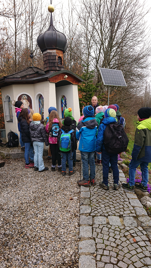 Am Montag, 17.04.23 trafen sich alle Kinder der 3. Klasse mit Herrn Pfarrer Huber, den Eltern und den beiden Lehrkräften Frau Fischer und Frau Lohbrunner zu einer gemeinsamen Wanderung anlässlich der 1. Hl. Kommunion. Gestartet wurde in Schwabbruck am Pfarrhof. Dann ging es über die Kapelle in Schwabbruck, wo wir ein kleines Picknick machten, nach Schwabsoien in die Kirche. Dort feierten wir gemeinsam Gottesdienst mit Eucharistie. Herr Pfarrer Huber gab kleine Einblicke in die Geschichte des Gotteshauses und band alle Kinder in die Messe mit ein. Es war trotz kurzem Regenschauer ein sehr gelungener Ausflug!