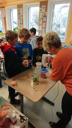 Barbara Endraß, ehemalige Werkenlehrerin der Schule, unterstützte die Klasslehrerin Frau Graser fachkundig und engagiert.
